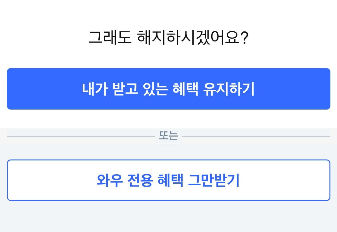 ÄíÆÎ ¿Í¿ì ¸â¹ö½Êµµ ºñ½ÁÇÕ´Ï´Ù. ¸â¹ö½Ê ÇØÁöÇϱ⸦ ´©¸£¸é ¡°³²Àº ±â°£ ÇýÅÃÀ» ´õ ÀÌ¿ëÇØº¸°í °áÁ¤Çϼ¼¿ä¡±¶ó¸ç ÇØÁöÇϸé ÄíÆÎÇ÷¹ÀÌ, ·ÎÄÏÇÁ·¹½Ã, ¿Í¿ì ÇÒÀΰ¡, »õº®¹è¼Û¡¤´çÀϹè¼Û, ¹«·á¹è¼Û µî ¸â¹ö½Ê ÇýÅÃÀ» ¹ÞÀ» ¼ö ¾ø´Ù°í ²÷ÀÓ¾øÀÌ °Á¶ÇÕ´Ï´Ù. ¹è´ÞÀǹÎÁ· ¹è¹Î Ŭ·´µµ °¢Á¾ °áÁ¦¡¤Á¦ÈÞ ÇýÅðú ¸â¹ö½Ê À¯Áö ¶§ ¹ÞÀ» ¼ö ÀÖ´Â ÄíÆùÀ» º¸¿©ÁÖ°í ÇØÁö ÀÇ»ç È®ÀÎ ÀýÂ÷¸¦ ¼öÂ÷·Ê °ÅµìÇÕ´Ï´Ù.