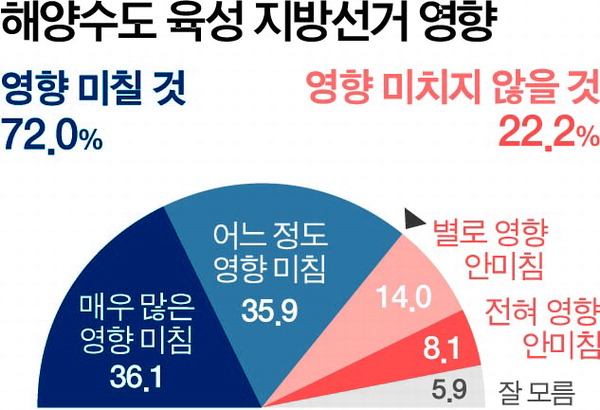 ÀÌ¿Í ÇÔ²² ÀÀ´äÀÚ 10¸í Áß 7¸íÀÎ 72%°¡ ÀÌÀç¸í Á¤ºÎ°¡ ¿ªÁ¡ÀûÀ¸·Î ÃßÁøÇÏ´Â ÇØ¾ç¼öµµ À°¼º »ç¾÷ÀÇ ¼º°ú°¡ ³»³â Áö¹æ¼±°Å¿¡ ¿µÇâÀ» ¹ÌÄ¥ °Í(¸Å¿ì ¸¹Àº ¿µÇâ ¹Ìħ 36.1%, ¾î´À Á¤µµ ¿µÇâ ¹Ìħ 35.9%)À¸·Î ³»´ÙºÃ´Ù. ¹Ý¸é ¿µÇâÀ» ¹ÌÄ¡Áö ¾ÊÀ» °ÍÀ̶ó´Â ÀÀ´äÀº 22.2%(¡®ÀüÇô ¿µÇâÀ» ¹ÌÄ¡Áö ¾ÊÀ» °Í¡¯ 8.1%, ¡®º°·Î ¿µÇâÀ» ¹ÌÄ¡Áö ¾ÊÀ» °Í¡¯ 14.0%)·Î ³ªÅ¸³µ´Ù. ÀÌ »ç¾ÈÀÌ ºÎ»ê½ÃÀå ¼±°Å¿¡¼ ÇÙ½É ÀÇÁ¦°¡ µÉ ¼ö ÀÖ´Ù´Â Á¡À» ¿³º¼ ¼ö ÀÖ´Â Á¶»ç °á°ú´Ù.