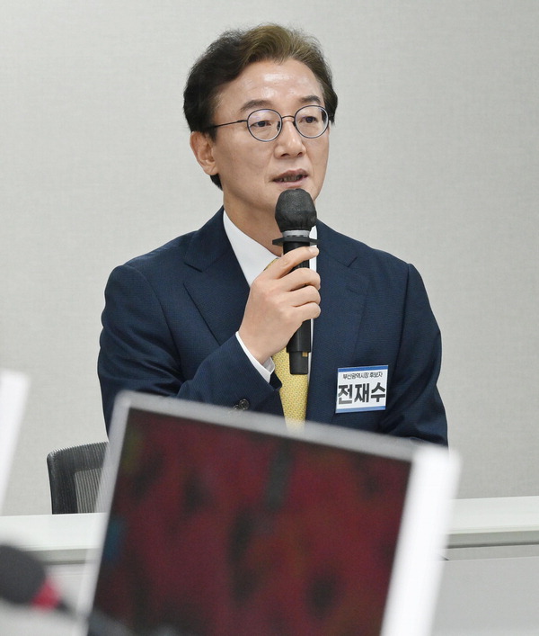 17ÀÏ ´õºÒ¾î¹ÎÁÖ´ç °øÃµ°ü¸®À§¿øÈ¸ÀÇ ºÎ»ê½ÃÀå Èĺ¸ÀÚ ¸éÁ¢ ÇöÀåÀº ÀüÀç¼ö(ºÎ»ê ºÏ°©) ÀÇ¿øÀÇ °ø¾à ¹ßǥȸ¸¦ ¹æºÒÄÉÇß´Ù´Â ÈĹ®ÀÌ´Ù. ¸éÁ¢¿¡¼´Â Àü ÀÇ¿øÀÇ HMM º»»ç ºÎ»ê ÀÌÀü Àü·«À» µÎ°í ¡®½ÅÀÇ ÇÑ ¼ö¡¯¶ó´Â Âù»çµµ ³ª¿Ô´Ù.