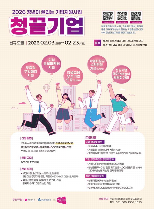 ºÎ»ê½Ã°¡ ¡®Àӱݡ¯ ¡®°í¿ë ¾ÈÁ¤¼º¡¯ ¡®¿ö¶ó¹ë¡¯ µîÀÇ Á¶°ÇÀ» µÎ·ç °®Ãá ¡®Ã»²ø(û³âÀÌ ²ø¸®´Â)±â¾÷¡¯À» Ãß°¡ ¼±Á¤ÇØ Áö¿øÇÑ´Ù.