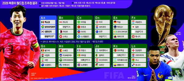 Çѱ¹ Ã౸´ëÇ¥ÆÀÀÌ ³»³â¿¡ ¿¸± ¡®2026 ±¹Á¦Ã౸¿¬¸Í(FIFA) ºÏÁß¹Ì ¿ùµåÄÅ¡¯¿¡¼ ¸ß½ÃÄÚ°¡ ¼ÓÇÑ AÁ¶¿¡ Æ÷ÇÔµÇ¸ç ¡®Á×À½ÀÇ Á¶¡¯´Â ÇÇÇß´Ù´Â Æò°¡°¡ ³ª¿Â´Ù. ÇÏÁö¸¸ ºñ±³Àû ¹«³ÇÑ Á¶¿¡ ¼ÓÇß´Ù°í Çϳª Àý´ë °ÀÚ°¡ ¾ø´Â ÆÀ°ú ÇÑ Á¶¿¡ ¹ÀÎ °ÍÀÌ ¶Ç ´Ù¸¥ ÀǹÌÀÇ ¡®Á×À½ÀÇ Á¶¡¯°¡ µÉ ¼ö ÀÖ´Ù´Â ¿¹Ãøµµ ³ª¿Â´Ù. Áö³ 6ÀÏ(Çѱ¹½Ã°£) ¿¸° ºÏÁß¹Ì ¿ùµåÄÅ Á¶ Ãß÷ °á°ú¸¦ ºÐ¼®ÇØ ºÃ´Ù.