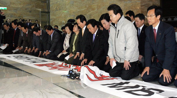 Çѳª¶ó´çÀÌ Áö³ 22ÀÏ ÇÑ¹Ì ÀÚÀ¯¹«¿ªÇùÁ¤(FTA) ºñÁص¿ÀǾÈÀ» ±â½Àó¸®ÇÏ¸é¼ Á¤±¹°æ»öÀÌ ½Éȵǰí ÀÖ´Ù. ¹ÎÁÖ´çÀ» ºñ·ÔÇÑ ¾ß´çÀº »õÇØ ¿¹»ê¾È ½ÉÀÇ µî ¸ðµç ±¹È¸ÀÏÁ¤À» °ÅºÎÇÏ¸é¼ Àü¸éÀûÀÎ ¹«È¿ÅõÀïÀ» ¼±¾ðÇß°í, Çѳª¶ó´çÀº "°°æÃ³¸®°¡ ¾Æ´Ï¶ó Ç¥°á󸮿´°í, ºÒ°¡ÇÇÇÑ ¼±ÅÃÀ̾ú´Ù"¸é¼ ÆÄÀåÀ» ÃÖ¼ÒȽÃ۴µ¥ ÁÖ·ÂÇϰí ÀÖ´Ù.