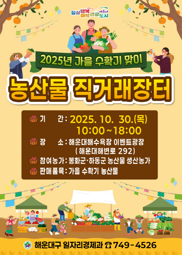 ÇØ¿î´ë±¸(±¸Ã»Àå ±è¼º¼ö)´Â 30ÀÏ ¿ÀÀü 10½Ã~¿ÀÈÄ 6½Ã ÇØ¿î´ëÇØ¼ö¿åÀå À̺¥Æ®±¤Àå¿¡¼ ¡®°¡À» ¼öÈ®±â ¸ÂÀÌ ³ó»ê¹° Á÷°Å·¡ÀåÅÍ¡¯¸¦ ¿¬´Ù.