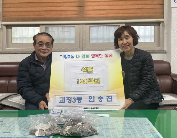 »çÇϱ¸ ±«Á¤3µ¿ÇàÁ¤º¹Áö¼¾ÅÍ´Â 23ÀÏ, ÁֹΠ¾È½ÂÁø¾¾·ÎºÎÅÍ À۳⿡ ÀÌ¾î ¿ÃÇØµµ ÆóÁö¡¤ºóº´ µîÀ» ÆÈ¾Æ ¸¶·ÃÇÑ ¼º±Ý 120¸¸ ¿øÀ» ±âºÎ¹Þ¾Ò´Ù.