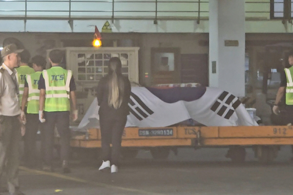 °øÇ׿¡ µµÂøÇÑ µÚ À¯Á·Àº ȹ°Ä¿¡ ½Ç¸®±â Àü °íÀÎÀÇ °üÀ» ´ëÇü űرâ·Î Á÷Á¢ °¨½ÕÀ¸¸ç, ÀÌ °üÀº űر⿡ ½ÎÀΠä Çѱ¹±îÁö À̵¿Çß´Ù. °íÀÎÀÇ ½Ã½ÅÀº 26ÀÏ ¹ã 11½Ã 50ºÐ ´ëÇÑÇ×°ø 476ÆíÀ¸·Î Ãâ¹ßÇØ 27ÀÏ ¿ÀÀü Çѱ¹¿¡ µµÂøÇÒ ¿¹Á¤ÀÌ´Ù. ´ëÇÑÇ×°ø Ãøµµ Ç×°øÈ¹° žÀç¿ë±â¸¦ ÃÖ»ó±ÞÀ¸·Î ÁغñÇÏ´Â µî °¢º°È÷ ½Å°æ ¾´ °ÍÀ¸·Î ÀüÇØÁ³´Ù.