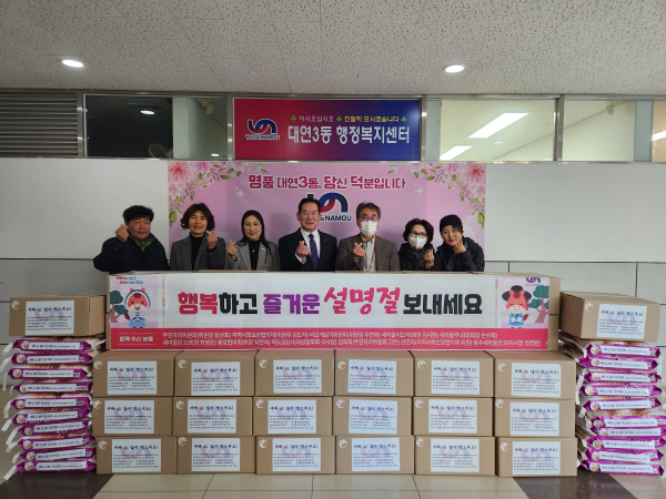 ºÎ»ê ³²±¸ ´ë¿¬3µ¿ ÇàÁ¤º¹Áö¼¾ÅÍ(µ¿Àå °ÇöÁ¶)´Â Áö³ 5ÀÏ ¼³ ¸íÀýÀ» ¸Â¾Æ °ü³» Ãë¾à°èÃþÀ» À§ÇÑ ¡®»ç¶ûÀÇ ³ª´® Çà»ç¡¯¸¦ °³ÃÖÇß´Ù. À̳¯ Çà»ç¿¡¼´Â ¾î·Á¿î ÀÌ¿ôµéÀÌ µû¶æÇÑ ¸íÀýÀ» º¸³¾ ¼ö ÀÖµµ·Ï °£Æí½Ä ¼¼Æ® 50¹Ú½º¿Í ½Ò 10kg 20Æ÷°¡ Àü´ÞµÆ´Ù.