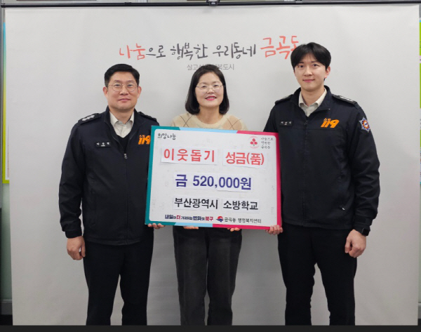 ºÎ»ê ºÏ±¸ ±Ý°îµ¿ ÇàÁ¤º¹Áö¼¾ÅÍ(µ¿Àå ÀÌÀºÈ)´Â Áö³ 11ÀÏ, ºÎ»ê¼Ò¹æÇб³(±³Àå À±Å½Â)°¡ Àú¼Òµæ Ãë¾à°èÃþ Áö¿øÀ» À§ÇØ ¼º±Ý 52¸¸ ¿øÀ» ±âŹÇß´Ù°í ¹àÇû´Ù.
