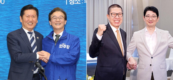 ´õºÒ¾î¹ÎÁÖ´ç 6¡¤3 ºÎ»ê½ÃÀå Èĺ¸ÀÎ ÀüÀç¼ö(ºÎ»ê ºÏ°©) ÀÇ¿øÀÌ 15ÀÏ Áß¾Ó´çÀÇ ÀüÆøÀûÀÎ ÁöÁö¸¦ ¹ÞÀ¸¸é¼ ÇöÀå Çຸ¿¡ ³ª¼¹´Ù. ¹Ý¸é ±¹¹ÎÀÇÈû Èĺ¸ÀÎ ¹ÚÇüÁØ ½ÃÀåÀº Áß¾Ó´ç°ú ´Ù¼Ò °Å¸®¸¦ µÎ¸é¼ µ¶ÀÚÀûÀÎ ¼±°Å Á¶Á÷À» °¡µ¿ÇÒ °ÍÀ¸·Î º¸¿© ´ëÁ¶¸¦ ÀÌ·é´Ù. ƯÈ÷ ¹Ú ½ÃÀåÀº ºÏ°© ±¹È¸ÀÇ¿ø º¸±È¼±°Å¿¡ Ã⸶ÇÏ´Â Çѵ¿ÈÆ Àü ±¹¹ÎÀÇÈû ´ëÇ¥¿ÍÀÇ ¡®¿¬´ë¡¯ ¿©ºÎ¸¦ ³õ°í °í½ÉÇÒ °ÍÀ¸·Î º¸ÀδÙ.
