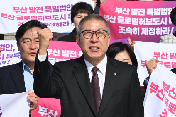 ¹ÚÇüÁØ ºÎ»ê½ÃÀåÀÌ 23ÀÏ ±¹È¸ °è´Ü¿¡¼­ ºÎ»ê±Û·Î¹ýƯº°¹ýÀ» Ã˱¸ÇÏ¸ç »è¹ßÀ» ÇÑ ÈÄ ±¸È£¸¦ ¿ÜÄ¡°í ÀÖ´Ù. ¿ÞÂʺÎÅÍ Á¤µ¿¸¸ ºÎ»ê½Ã´çÀ§¿øÀå, ¹Ú ½ÃÀå. ±èÁ¤·Ï ±âÀÚ
