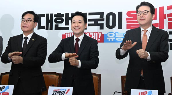 ±¹¹ÎÀÇÈû À嵿Çõ ´ëÇ¥¿Í ¼Û¾ð¼® ¿ø³»´ëÇ¥ µî ÁöµµºÎ°¡ Àå¾ÖÀÎÀÇ ³¯ÀÎ 20ÀÏ ±¹È¸¿¡¼­ ÃÖ°íÀ§¿øÈ¸ÀǸ¦ Çϸ鼭 ¡®±¹¹Î ¿©·¯ºÐ »ç¶ûÇÕ´Ï´Ù¡¯´Â ¼ö¾î Àλ縦 Çϰí ÀÖ´Ù. ±èÁ¤·Ï ±âÀÚ