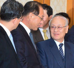 | ±¹¹«ÃѸ® Èĺ¸ÀÚÀÎ ±è¿ëÁØ(¿À¸¥ÂÊ Ã¹ ¹øÂ°) ÀμöÀ§¿øÀå°ú Ȳ¿ì¿©(¿À¸¥ÂÊ µÎ ¹øÂ°) »õ´©¸®´ç ´ëÇ¥°¡ 28ÀÏ ¿ÀÈÄ ¼¿ï ¿©Àǵµ ±¹È¸ ±Íºó½Ä´ç¿¡¼ ¿¸° '»õ´©¸®´ç¡¤ÀμöÀ§ ¿¬¼®È¸ÀÇ'¿¡ ¾Õ¼ ȯ´ãÀ» ³ª´©°í ÀÖ´Ù. ÀÌ¿ë¿ì ±âÀÚ ywlee@kookje.co.kr |