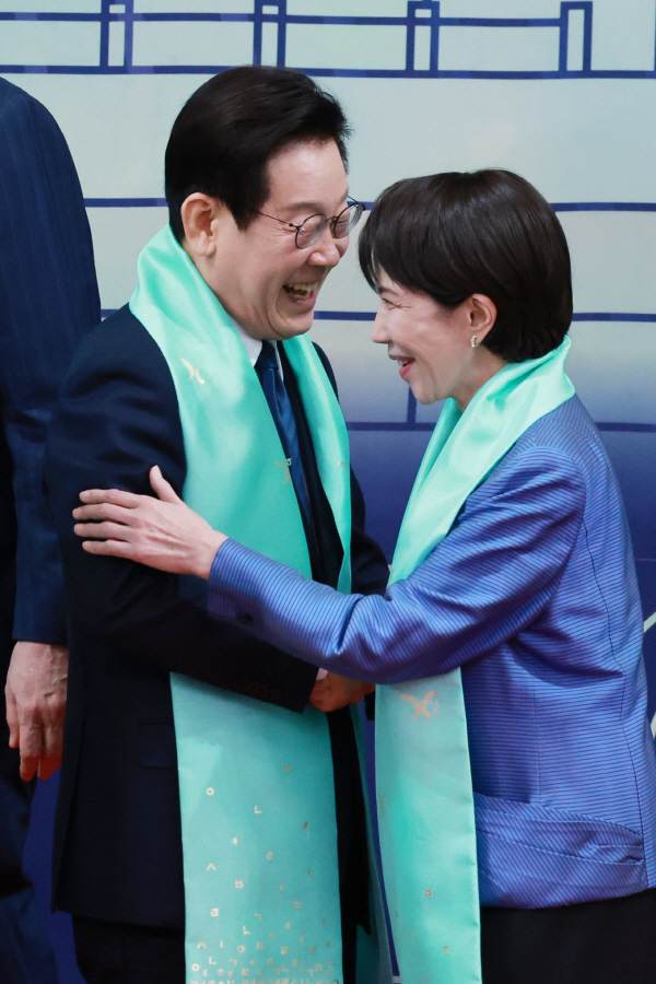 | ÀÌÀç¸í ´ëÅë·ÉÀÌ 1ÀÏ °æÁÖȹéÄÁº¥¼Ç¼¾ÅÍ(HICO)¿¡¼ ¿¸° 2025 ¾Æ½Ã¾ÆÅÂÆò¾ç°æÁ¦Çù·Âü(APEC) Á¤»óȸÀÇ ±â³äÃÔ¿µ¿¡¼ ´ÙÄ«ÀÌÄ¡ »ç³ª¿¡ ÀϺ» ÃѸ®¿Í ÀλçÇϰí ÀÖ´Ù. 2025.11.1 ¿¬ÇÕ´º½º