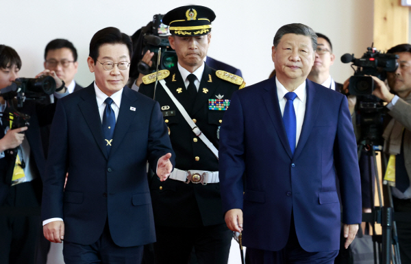 ÀÌÀç¸í ´ëÅë·É°ú ½ÃÁøÇÎ Áß±¹ ±¹°¡ÁÖ¼®ÀÌ 1ÀÏ °æºÏ ±¹¸³°æÁÖ¹Ú¹°°ü¿¡¼­ ¿­¸° °ø½Ä ȯ¿µ½Ä¿¡¼­ ÀÇÀå´ë »ç¿­À» Çϰí ÀÖ´Ù. ¿¬ÇÕ´º½º