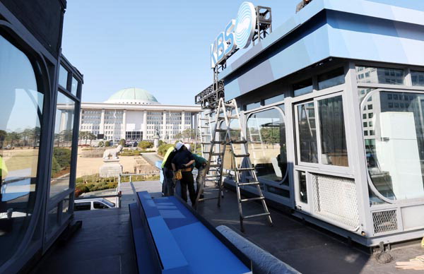 ºñ»ó°è¾ö »çÅ 1³âÀ» ÀÌÆ² ¾ÕµÐ 1ÀÏ ±¹È¸¿¡ ¹æ¼Û»çµéÀÇ Áß°è ºÎ½º°¡ ¼³Ä¡µÇ°í ÀÖ´Ù. ¿¬ÇÕ´º½º