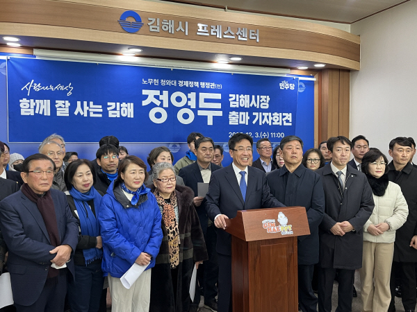 ´õºÒ¾î¹ÎÁÖ´ç Á¤¿µµÎ Àü û¿Í´ë °æÁ¦Á¤Ã¥ ÇàÁ¤°üÀÌ 3ÀÏ ±èÇØ½Ãû ÇÁ·¹½º¼¾ÅÍ¿¡¼­ ³»³â ±èÇØ½ÃÀå ¼±°Å Ãâ»çÇ¥¸¦ ´øÁ³´Ù. Áö³­´Þ ¼ÛÀ¯ÀÎ ±èÇØ½ÃÀÇ¿ø¿¡ ÀÌ¾î µÎ ¹øÂ° °ø½Ä Ã⸶ ¼±¾ðÀÌ´Ù.