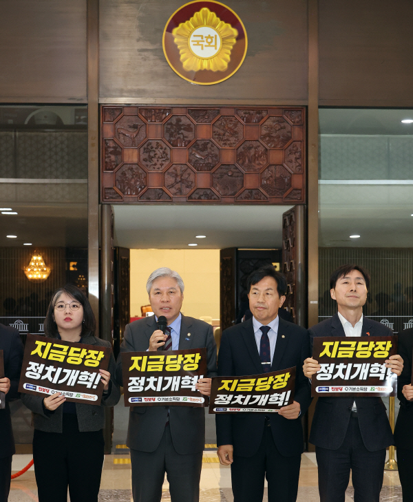 | Á¶±¹Çõ½Å´ç ¼¿ÕÁø ¿ø³»´ëÇ¥(¿ÞÂÊ µÎ ¹øÂ°)°¡ 12ÀÏ ±¹È¸ ·ÎÅÙ´õȦ¿¡¼ ¿¸° °³ÇõÁøº¸ 4´ç ÇÕµ¿ÀÇ¿øÃÑȸ¿¡¼ Á¤Ä¡°³ÇõÀ» Ã˱¸ÇÏ´Â ¹ß¾ðÀ» Çϰí ÀÖ´Ù. ¿¬ÇÕ´º½º