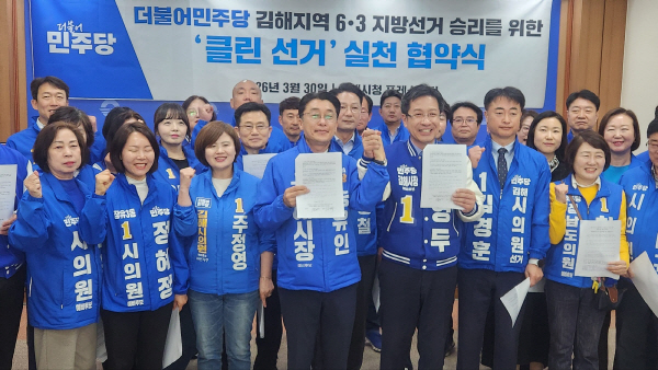 ¼ÛÀ¯ÀΡ¤Á¤¿µµÎ ±èÇØ½ÃÀå ¿¹ºñÈ常¦ ´ëÇ¥·Î ÇÑ À̵éÀº 30ÀÏ ±èÇØ½Ãû ÇÁ·¹½º¼¾ÅÍ¿¡¼ ¡®Å¬¸° °æ¼±¡¯ Çù¾à¼¸¦ ü°áÇß´Ù.
