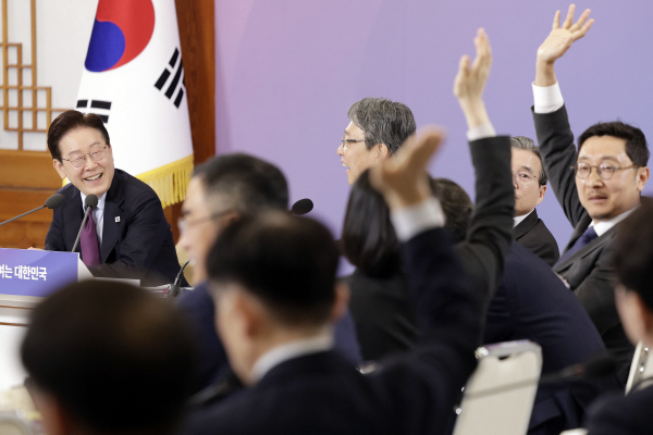 | ÀÌÀç¸í ´ëÅë·ÉÀÌ 9ÀÏ Ã»¿Í´ë¿¡¼ ¿¸° ±¹¹Î°æÁ¦ÀÚ¹®È¸ÀÇ Á¦1Â÷ Àüü ȸÀÇ¿¡¼ Á¾·á ½Ã°£ ÀÌÈÄ¿¡µµ Âü¼®ÀÚµéÀÇ ¹ß¾ð±Ç ¿äûÀÌ À̾îÁöÀÚ »çȸÀÚ¿¡°Ô Ãß°¡ ÁøÇàÀ» ûÇϰí ÀÖ´Ù. ¿¬ÇÕ´º½º