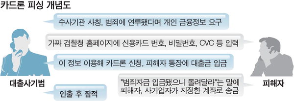 °æÂûÀ̳ª °ËÂû µî ¼ö»ç±â°üÀ» »çĪÇÑ »ç¶÷ÀÌ Àüȸ¦ °É¾î¿Í "´ç½ÅÀÇ °³ÀÎ Á¤º¸°¡ À¯ÃâµÅ ¼ö»ç ÁßÀÌ´Ù", "´ç½Å À̸§À¸·Î °³¼³µÈ ´ëÆ÷ÅëÀåÀÌ ÀÖ¾î ¼ö»ç ÁßÀÌ´Ù"¸ç Ãß°¡ ÇÇÇØ¸¦ ¸·±â À§ÇØ ±ÝÀ¶Á¤º¸¸¦ ¾Ë·Á´Þ¶ó°í ¿ä±¸ÇÑ´Ù. Ä«µå·ÐÀº Ä«µå¹øÈ£, ºñ¹Ð¹øÈ£, CVC(À¯È¿¼º ÄÚµå)¸¦ ¾Ë¸é ´©±¸³ª Àüȳª ÀÎÅͳÝÀ¸·Î ¼Õ½±°Ô ´ëÃâ½ÅûÀ» ÇÒ ¼ö ÀÖ´Ù´Â Á¡À» ¾Ç¿ëÇÏ·Á´Â °ÍÀÌ´Ù.