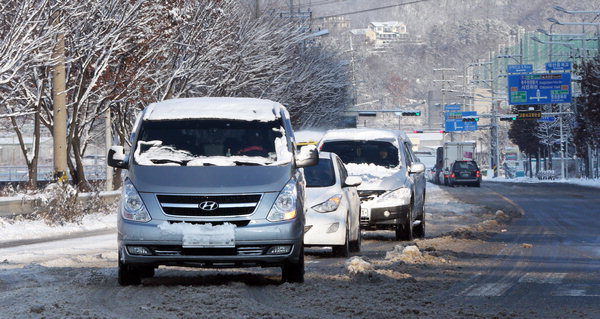 | ´«ÀÌ ³»¸° µµ·Î¸¦ Â÷·®µéÀÌ ¼ÇàÇϰí ÀÖ´Ù. ºùÆÇ±æ¿¡ ƯÈ÷ Ãë¾àÇÑ ºÎ»ê ¿ï»ê °æ³²±Ç ¿îÀüÀÚµéÀº ÀÚµ¿Â÷ Á¡°ËÀ» ¹Ì¸® ¹Ì¸® Çϰí