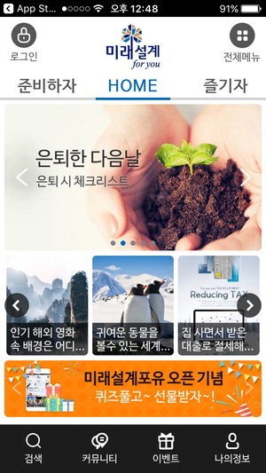 ½ÅÇÑÀºÇàÀÇ '¹Ì·¡¼³°è Æ÷À¯(for you)'´Â ÀºÅð±â¿¡ ÀÖ´Â 50´ë ÀÌ»ó °í°´À» À§ÇÑ ±ÝÀ¶°ú ºñ±ÝÀ¶¼Ö·ç¼ÇÀ» Á¦°øÇϰí, Ä¿¹Â´ÏƼ¸¦ ÅëÇØ °í°´µéÀÌ ¼·Î °ø°¨ÇÏ°í ¼ÒÅëÇÏ´Â ¶óÀÌÇÁ Ç÷§ÆûÀÌ ¸ñÇ¥´Ù. ÀÌ ¾Û ¿ª½Ã Å« ±Û¾¾Ã¼¿Í ¼Õ½¬¿î ȸé À̵¿ µî ½Ã´Ï¾î Áß½ÉÀ¸·Î ȸéÀ» ±¸¼ºÇß°í, ´Ù¾çÇÑ ºñ±ÝÀ¶ Á¦ÈÞ¸¦ ±â¹ÝÀ¸·Î ½Ã´Ï¾î °í°´µéÀÇ °ü½É»çÀÎ ¿©Çà, °Ç°, ÀÏÀÚ¸®, ¹Ý·Áµ¿¹° Á¤º¸, ¹®ÈÇà»ç ÃÊû µî ´Ù¾çÇÑ ¼ºñ½º¸¦ Á¦°øÇÒ °èȹÀÌ´Ù.