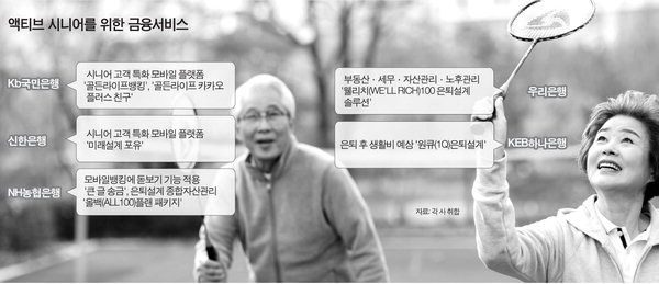 '¾×Ƽºê ½Ã´Ï¾î(active senior)¸¦ Àâ¾Æ¶ó.' Çϳª±ÝÀ¶¿¬±¸¼Ò´Â ¿ÃÇØ ±ÝÀ¶ Æ®·»µå Áß Çϳª·Î ¾×Ƽºê ½Ã´Ï¾î¸¦ ²Å¾Ò´Ù. ¾×Ƽºê ½Ã´Ï¾î¶õ ÀºÅð ÀÌÈÄ¿¡µµ ¼Òºñ¿Í ¿©°¡ »ýȰÀ» Áñ±â¸ç »çȸȰµ¿¿¡ Àû±ØÀûÀ¸·Î Âü¿©ÇÏ´Â 50~60´ë¸¦ ¸»ÇÑ´Ù. ¿Ü¸ð³ª °Ç° °ü¸® µî¿¡ °ü½ÉÀÌ ¸¹¾Æ Àڽſ¡ ´ëÇÑ ÅõÀÚµµ ¾Æ³¢Áö ¾Ê´Â °ÍÀÌ À̵éÀÇ Æ¯Â¡ÀÌ´Ù. ±ÝÀ¶±Ç¿¡¼µµ ¾×Ƽºê ½Ã´Ï¾î¸¦ »ç·ÎÀâ±â À§ÇÑ ¼ºñ½º°¡ ¼Ó¼Ó Ãâ½ÃµÇ°í ÀÖ´Ù.