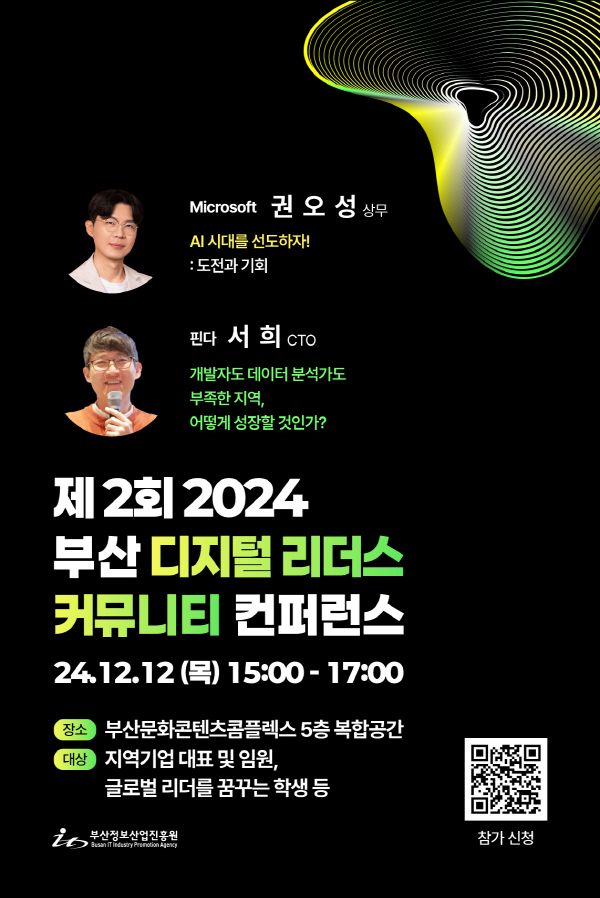 ºÎ»êÁ¤º¸»ê¾÷ÁøÈï¿øÀº ¿À´Â 12ÀÏ ºÎ»ê¹®ÈÄÜÅÙÃ÷ÄÞÇ÷º½º(BCC) 5Ãþ º¹ÇÕ°ø°£¿¡¼ ¡®AI½Ã´ë ¸®´õ½Ê¡¯À» ÁÖÁ¦·Î Á¦2ȸ ¡®2024 µðÁöÅÐ ¸®´õ½º Ä¿¹Â´ÏƼ ÄÁÆÛ·±½º¡¯¸¦ °³ÃÖÇÑ´Ù°í 11ÀÏ ¹àÇû´Ù.