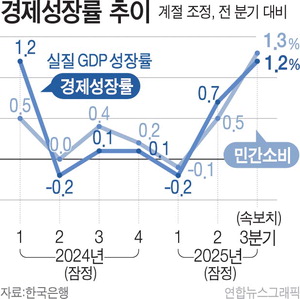 28ÀÏ ÇÑÀº¿¡ µû¸£¸é 3ºÐ±â ½ÇÁú ±¹³»ÃÑ»ý»ê(GDP) ¼ºÀå·ü(Á÷ÀüºÐ±â´ëºñ¡¤¼Óº¸Ä¡)Àº 1.2%·Î, Áö³ÇØ 1ºÐ±â(1.2%) ÀÌÈÄ 1³â 6°³¿ù ¸¸¿¡ °¡Àå ³ô¾Ò´Ù. 3ºÐ±â ¼ºÀåÀº ³»¼ö°¡ ÁÖµµÇß´Ù. ¹Î°£ ¼Òºñ¡¤Á¤ºÎ ¼Òºñ¡¤¼³ºñÅõÀÚ µî ³»¼ö°¡ ²ø¾î ¿Ã¸° ¼ºÀå·üÀÌ Àüü 1.2% °¡¿îµ¥ 1.1%Æ÷ÀÎÆ®¸¦ Â÷ÁöÇß´Ù. ƯÈ÷ ¹Î°£ ¼Òºñ Áõ°¡À²(1.3%)Àº 2022³â 3ºÐ±â(1.3%) ÀÌÈÄ ÃÖ°í ±â·ÏÀÌ´Ù. Á¤ºÎÀÇ ¹Î»ý ȸº¹ ¼ÒºñÄíÆù ¹èÆ÷ µîÀÌ ¼Òºñ ȸº¹À» À̲ø¾ú´Ù´Â °Ô ÇÑÀº ºÐ¼®ÀÌ´Ù.