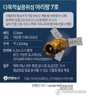 ¿ìÁÖÇ×°øÃ»°ú Çѱ¹Ç×°ø¿ìÁÖ¿¬±¸¿ø(Ç׿쿬)Àº ´Ù¸ñÀû½Ç¿ëÀ§¼º 7È£(¾Æ¸®¶û 7È£)°¡ 2ÀÏ ¿ÀÀü 2½Ã 21ºÐ²² ÇÁ¶û½º·É ±â¾Æ³ª¿ìÁÖ¼¾ÅÍ¿¡¼­ ¼º°øÀûÀ¸·Î ¹ß»çµÆ´Ù°í ¹àÇû´Ù. ¾Æ¸®¶û 7È£´Â ¹ß»ç ¾à 44ºÐ ÈÄ VEGA-C ¹ß»çü·ÎºÎÅÍ Á¤»óÀûÀ¸·Î ºÐ¸®µÆ°í ¾à 1½Ã°£ 9ºÐ µÚ¿¡´Â ³²±Ø Æ®·Ñ Áö»ó±¹°úÀÇ Ã¹ ±³½Å¿¡ ¼º°øÇß´Ù. ¾Æ¸®¶û 7È£´Â ±Ëµµ»ó½ÃÇè°ú Ãʱâ¿î¿µ °úÁ¤À» °ÅÃÄ ³»³â »ó¹Ý±âºÎÅÍ´Â º»°ÝÀûÀÎ Áö»ó°üÃø¿µ»óÀ» Á¦°øÇÒ ¿¹Á¤ÀÌ´Ù.