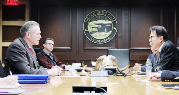¹Ú ½ÃÀå°ú ½Ã ´ëÇ¥´ÜÀº ÇùÁ¤¿¡ ÀÌ¾î ¾Ë·¡½ºÄ« ÁÖÁ¤ºÎ ¾ÞÄ¿¸®Áö »ç¹«¼Ò¸¦ ã¾Æ ¸¶ÀÌÅ© ´ø¸®ºñ ¾Ë·¡½ºÄ« ÁÖÁö»ç¿Í ¸é´ãÇß´Ù. ÀÌ ÀÚ¸®¿¡¼­ ¹Ú ½ÃÀåÀº ºÎ»êÀÇ ±Û·Î¹ú Çãºêµµ½Ã ºñÀüÀ» °øÀ¯Çϰí, ºÏ±ØÇ×·Î ½Ã´ëÀÇ ¼±Á¦Àû ´ëºñ¿Í ¿¡³ÊÁö¡¤Ãµ¿¬ÀÚ¿ø µî ´Ù¾çÇÑ ºÐ¾ß¿¡¼­ ºÎ»ê°ú ¾Ë·¡½ºÄ«ÁÖ °£ °ø°¨´ë¸¦ È®ÀÎÇß´Ù.