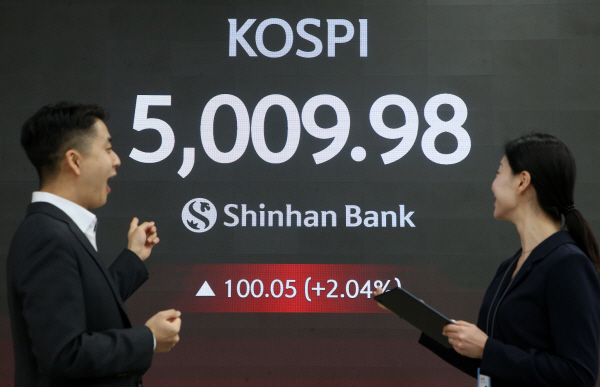 | ÄÚ½ºÇǰ¡ ÀåÁß 5000À» ³Ñ¾î¼± °¡¿îµ¥ 22ÀÏ ¼¿ï Áß±¸ ½ÅÇÑÀºÇà º»Á¡ ·Îºñ¿¡¼ µô·¯µéÀÌ ¹Ì¼Ò Áþ°í ÀÖ´Ù. ½ÅÇÑÅõÀÚÁõ±Ç Á¦°ø