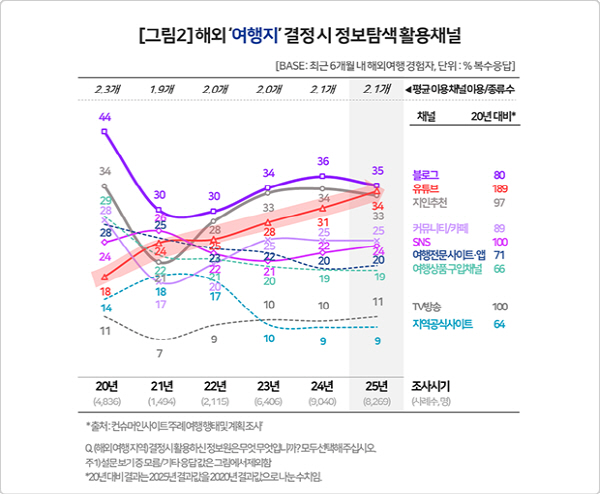 27ÀÏ ¿©Çà ¸®¼Ä¡ Àü¹®±â°ü ÄÁ½´¸ÓÀλçÀÌÆ®°¡ 2020ºÎÅÍ 2025³â±îÁö ±¹³»¿Ü ¿©Çà °æÇèÀÚ¿¡°Ô ¿©ÇàÁö¿Í ½Ä»ç¡¤¼÷¼Ò °áÁ¤ ½Ã Á¤º¸¸¦ ¾îµð¼ ¾ò¾ú´ÂÁö µî¿¡ ´ëÇÑ ¼³¹® °á°ú¸¦ ºÐ¼®Çß´Ù. ÀÌ »çÀÌÆ®´Â 2015³âºÎÅÍ ¡®ÁÖ·Ê ¿©Çà ÇàÅ ¹× °èȹ Á¶»ç(¸ÅÁÖ 500¸í, ¿¬°£ 2¸¸6000¸í)¡¯¸¦ ÇØ¿À°í ÀÖ´Ù.