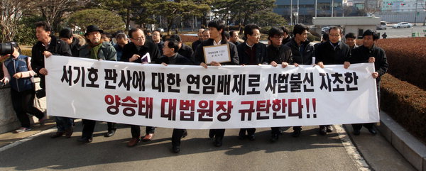 Àϼ± ÆÇ»çµéÀº ÀÌ °°Àº ¿òÁ÷ÀÓ¿¡ ÁÖ¸ñÇϰí ÀÖ´Ù. ºÎ»êÁö¹ýÀº ¾ÆÁ÷±îÁö ÆÇ»çȸÀÇ ¼ÒÁý °èȹÀÌ ¾ø´Â °ÍÀ¸·Î ¾Ë·ÁÁ³´Ù. ºÎ»êÁö¹ýÀÇ ÇÑ ÆÇ»ç´Â "ÆÇ»çµéµµ ÀÚ½ÅÀÇ ±Ù¹«ÆòÁ¤À» ¸ð¸£´Ï À̹ø »ç°ÇÀ» °è±â·Î ½É»çÀÇ °øÁ¤¼º¿¡ Àǹ®À» °®´Â °Í"À̶ó°í ¸»Çß´Ù.