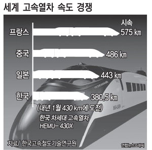 HEMU-430X´Â Á¤ºÎ°¡ ±¹°¡ ¿¬±¸¡¤°³¹ß(R&D)»ç¾÷À¸·Î ÃßÁø ÁßÀÎ Â÷¼¼´ë °í¼Ó¿Â÷´Ù. Áö³ 9¿ù 9ÀÏ¿¡´Â ½Ã¼Ó 354.64§°·Î ù ¹øÂ° ÃÖ°í ±â·ÏÀ» ¼¼¿ü´Ù. ¿¬±¸¿øÀº ¿À´Â 20ÀÏ ½Ã¼Ó 400§°¿¡ µµ´ÞÇÑ µÚ ³»³â 1¿ù 3ÀÏ ½Ã¼Ó 430§°±îÁö µ¹ÆÄÇÒ ¼ö ÀÖÀ» °ÍÀ¸·Î º¸°í ÀÖ´Ù. ½ÃÇè¿¡ ¼º°øÇÏ¸é ¿ì¸®³ª¶ó´Â ÇÁ¶û½º(575§°/h)¿Í Áß±¹(486§°/h), ÀϺ»(443§°/h)¿¡ ÀÌ¾î ¼¼°è¿¡¼ ³× ¹øÂ°·Î 430§°/h±Þ °í¼Óöµµ ±â¼ú º¸À¯±¹ÀÌ µÈ´Ù.