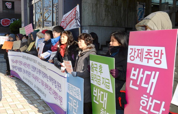 | Áö³ 17ÀÏ ºÎ»ê Áß±¸ ºÎ»êÃâÀÔ±¹°ü¸®»ç¹«¼Ò ¾Õ¿¡¼ ¿µ³²±Ç ÀÌÁֳ뵿´Üü°¡ ÀÌÁֳ뵿ÀÚÀÇ Àαǰú ³ëµ¿±Ç º¸ÀåÀ» Ã˱¸ÇÏ´Â ±âÀÚȸ°ßÀ» Çϰí ÀÖ´Ù. ±¹Á¦½Å¹®DB |