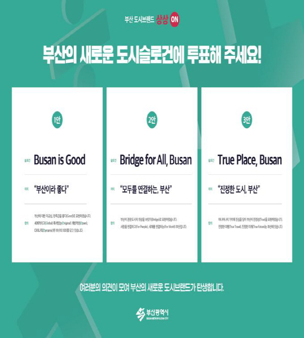 ¡®Busan is Good¡¯ ¡®Bridge for All, Busan¡¯ ¡®True Place, Busan¡¯.