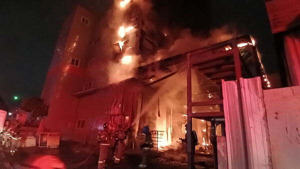 ÀÌ ºÒ·Î °øÀå Àα٠±â¼÷»ç¿¡¼ °ÅÁÖÇÏ´ø ¿Ü±¹ÀÎ Á÷¿ø 4¸íÀÌ ´ëÇÇÇß´Ù. ¼Ò¹æ´ç±¹Àº 22ÀÏ ÇÕµ¿°¨½ÄÀ» ÅëÇØ Á¤È®ÇÑ ÈÀç ¿øÀÎÀ» ¹àÈú ¿¹Á¤ÀÌ´Ù.