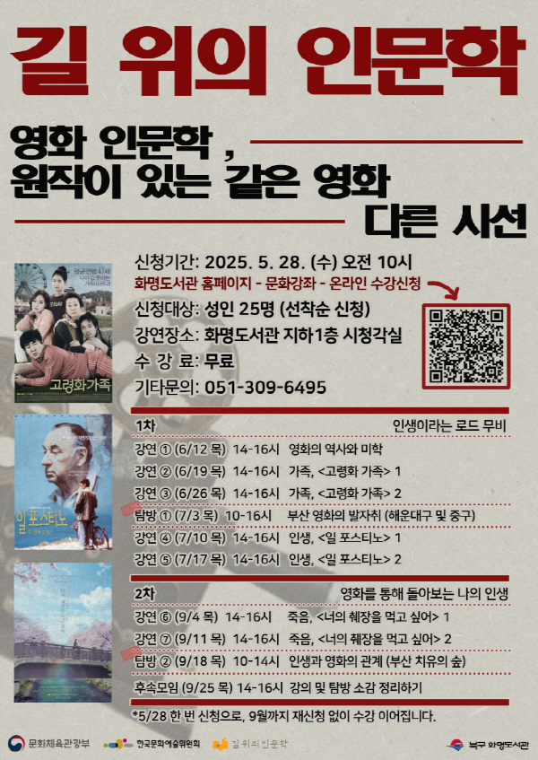 ÇÁ·Î±×·¥Àº ÃÑ 3Â÷·Î ¿î¿µµÈ´Ù. 1Â÷ ÇÁ·Î±×·¥(6/12~7/17)Àº¡®ÀλýÀ̶ó´Â ·Îµå ¹«ºñ¡¯¸¦ ÁÖÁ¦·Î ¿µÈ <°í·ÉÈ °¡Á·>, <ÀÏ Æ÷½ºÆ¼³ë>¸¦ ¿©·¯ °üÁ¡¿¡¼ °¨»óÇϰí, ºÎ»ê Áß±¸ ¿Í ÇØ¿î´ë±¸¿¡ À§Ä¡ÇÑ <ºÎ»ê ¿µÈüÇè¹Ú¹°°ü>°ú <ºÎ»ê ¿µÈÀÇ Àü´ç>À» ޹æÇÒ ¿¹Á¤ÀÌ´Ù.