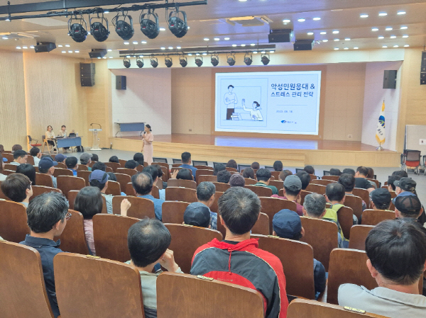±âº»ÀûÀÎ ¹Î¿øÀÀ´ë ¹æ¹ý°ú ƯÀ̹οø¿¡ ´ëóÇÏ´Â ¹æ¹ýÀ» ¼÷ÁöÇϰí Á÷¿øµéÀÇ ¾÷¹« ½ºÆ®·¹½º ÇØ¼Ò ¹× °ü¸®¸¦ À§ÇØ ¸¶·ÃµÈ À̹ø ±³À°Àº 2Â÷·Î ³ª´² ÁøÇàÇÏ¿´À¸¸ç 6±ÞÀÌÇÏ °ø¹«¿ø ¹× ±â°£Á¦±Ù·ÎÀÚ µî 5¹é¿©¸íÀÇ Á÷¿øÀÌ Âü¼®ÇÏ¿´´Ù.