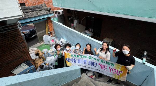 ºÎ»ê ºÏ±¸ ´öõ2µ¿ ÇàÁ¤º¹Áö¼¾ÅÍ(µ¿Àå ¹®¿ÁÈñ)´Â Áö³ 8ÀÏ, ´öõ2µ¿ Áö¿ªÁÖ¹ÎÀ¸·Î ±¸¼ºµÈ ¡®´öÀÌ³× ¼öȣõ»ç Á¤¸®¼ö³³ ºÀ»ç´Ü¡¯°ú ÇÔ²² ÁÖ°Å Ãë¾à°èÃþÀ» À§ÇÑ ÁÖ°Åȯ°æ°³¼± Áö¿ø»ç¾÷À» ½Ç½ÃÇß´Ù°í ¹àÇû´Ù.