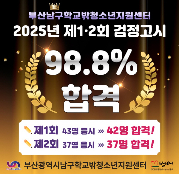 ºÎ»ê±¤¿ª½Ã ³²±¸ Çб³ ¹Û û¼Ò³â Áö¿ø¼¾ÅÍ(ÀÌÇÏ ¡®³²±¸²Þµå¸²¼¾ÅÍ¡¯¶ó ÇÑ´Ù) ¼Ò¼Ó Çб³ ¹Û û¼Ò³âµéÀÌ 2025³âµµ »ó?ÇϹݱ⺰ °¢ 1ȸ¾¿ Ä¡·ïÁø °ËÁ¤°í½Ã¿¡ 79¸íÀÌ ÇÕ°ÝÇÏ´Â ¼º°ú¸¦ ±â·ÏÇß´Ù.