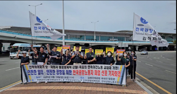 Àü±¹ 15°³ °øÇ× ³ëµ¿ÀÚ°¡ 19ÀÏ ¾ÈÀüÇÑ ÀÏÅÍ¿Í °øÇ×À» À§ÇÑ Á¦µµ °³¼±À» Ã˱¸Çϸç ÃÑÆÄ¾÷¿¡ ³ª¼¹´Ù.