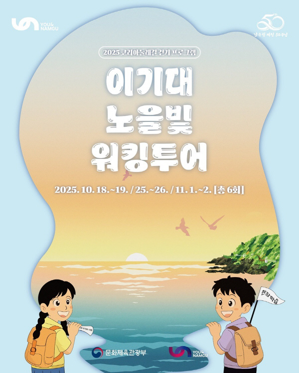 ºÎ»ê±¤¿ª½Ã ³²±¸(±¸Ã»Àå ¿ÀÀºÅÃ)´Â À̱â´ë °ü±¤ Ȱ¼ºÈ¿Í ÄÚ¸®¾ÆµÑ·¹±æ È«º¸¸¦ À§ÇØ ¡¸À̱â´ë ³ëÀ»ºû ¿öÅ·Åõ¾î¡¹¸¦ ¿À´Â 10¿ù 18ÀϺÎÅÍ 11¿ù 2ÀϱîÁö ¸ÅÁÖ ÁÖ¸» ¿ÀÈÄ 4½Ã, ÃÑ 6ȸ ¿î¿µÇÑ´Ù°í ¹àÇû´Ù.