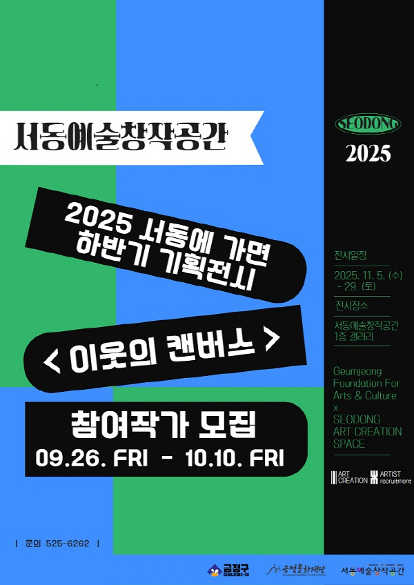 ºÎ»ê½Ã ±ÝÁ¤±¸ ±ÝÁ¤¹®ÈÀç´Ü(ÀÌ»çÀå À±ÀÏÇö)Àº ¿À´Â 11¿ù 5ÀÏ(¼ö)ºÎÅÍ ¿¸®´Â ¼µ¿¿¹¼úâÀÛ°ø°£ ÇϹݱ⠱âȹÀü½Ã ¼µ¿¿¡ °¡¸é <ÀÌ¿ôÀÇ Äµ¹ö½º> Àü½Ã¿¡ Âü¿©ÇÒ ÀÛ°¡¸¦ 9¿ù 26ÀÏ(±Ý)ºÎÅÍ ³»´Þ 10ÀÏ(±Ý)±îÁö ¸ðÁýÇÑ´Ù°í ¹àÇû´Ù.