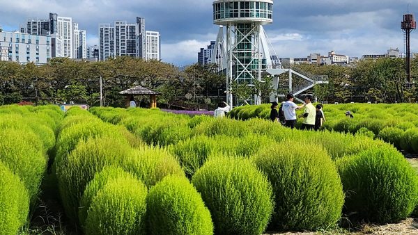 °¡À»ÀÇ ½ÃÀÛ°ú ÇÔ²² °æ³² ¾ç»ê½Ã Ȳ»ê°ø¿ø Áߺα¤ÀåÀÌ È²È ÄÚ½º¸ð½º·Î ¹°µé¾ú´Ù. û¸íÇÑ °¡À» ÇÏ´ÃÀ» ¹è°æÀ¸·Î Ȱ¦ ÇÉ È²È ÄÚ½º¸ð½º´Â »çÁø ÃÔ¿µ ¸í¼Ò·Î Àα⸦ ²ø°í ÀÖ´Ù.