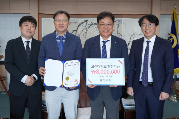 ´ëÇб³È¸(´ãÀÓ¸ñ»ç ¹Ú½Å)´Â 10¿ù 1ÀÏ(¿ù) °í½Å´ëÇб³(ÃÑÀå ÀÌÁ¤±â)¿¡¼ ¹ßÀü ¹× ÀåÇÐ ±â±Ý ÃÑ 8¹é¸¸ ¿ø Àü´Þ½ÄÀ» ÁøÇàÇß´Ù. Àü´Þ½Ä¿¡´Â ¹Ú½Å ´ãÀÓ¸ñ»ç¿Í ±è¸íÈ£ ºÎ¸ñ»ç°¡ Âü¼®ÇßÀ¸¸ç, À̹ø ÈÄ¿øÀº ´ëÇÐÀÇ ±³À°°ú ÀÎÀç ¾ç¼ºÀ» Áö¿øÇϱâ À§ÇØ ¸¶·ÃµÆ´Ù.