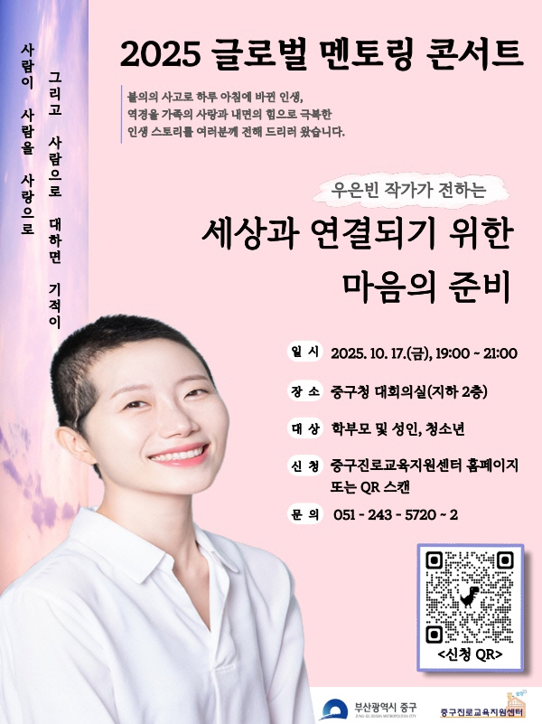 ºÎ»ê Áß±¸(±¸Ã»Àå ÃÖÁøºÀ)´Â Áß±¸ Áø·Î±³À°Áö¿ø¼¾ÅÍ ÁÖ°üÀ¸·Î ¿À´Â 10¿ù 17ÀÏ(±Ý) ¿ÀÈÄ 7½Ã, Áß±¸Ã» ÁöÇÏ2Ãþ ´ëȸÀǽǿ¡¼ ¡¸2025 ±Û·Î¹ú ¸àÅ丵 ÄܼƮ¡¹¸¦ °³ÃÖÇÑ´Ù.