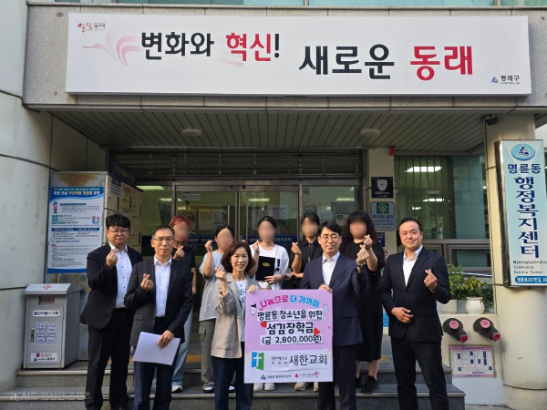 ºÎ»ê µ¿·¡±¸ ¸í·ûµ¿ ÇàÁ¤º¹Áö¼¾ÅÍ(µ¿Àå È«Çâ¼÷)´Â »õÇѱ³È¸(´ãÀÓ¸ñ»ç ÀüÈñö)°¡ Áö³ 1ÀÏ ¸í·ûµ¿ ÇàÁ¤º¹Áö¼¾ÅÍ µ¿Àå½Ç¿¡¼ ¡®¼¶±è ÀåÇÐ±Ý ¼ö¿©½Ä¡¯À» ¿°í, ¾î·Á¿î ¿©°Ç ¼Ó¿¡¼µµ Áö¿ª»çȸÀÇ ¹Ì·¡¸¦ À§ÇØ ³ë·ÂÇϰí Àִ û¼Ò³â 4¸í¿¡°Ô °¢ 70¸¸ ¿ø¾¿ ÃÑ 280¸¸ ¿øÀÇ ÀåÇÐ±Ý ¹× ÀåÇÐÁõ¼¸¦ Àü´ÞÇß´Ù°í ¹àÇû´Ù.