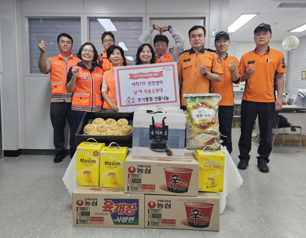 À̹ø ³ª´®¿¡´Â »çÁ÷119¾ÈÀü¼¾ÅÍ(¼¾ÅÍÀå ¼Õµ¿¿ø) Á÷¿ø Àϵ¿°ú ³²¡¤¿© ÀÇ¿ë¼Ò¹æ´ë(³²¼º´ëÀå ¹ÚÂùÈ£, ¿©¼º´ëÀå ¼Û¸ÍÀÌ)°¡ Âü¿©ÇØ ½Ò 10kg 4Æ÷, ¶ó¸é 3¹Ú½º, ±è 4¹Ú½º, Ä¿Çǹͽº 3¹Ú½º¸¦ Àü´ÞÇß´Ù. ¶ÇÇÑ ÀÇ¿ë¼Ò¹æ´ë¿ø ±èÀç¿î¾¾´Â °³ÀÎÀûÀ¸·Î ¼º±Ý 10¸¸ ¿ø°ú °úÀÏ 2¹Ú½º¸¦ ±âºÎÇØ ¿ÂÁ¤À» ´õÇß´Ù.