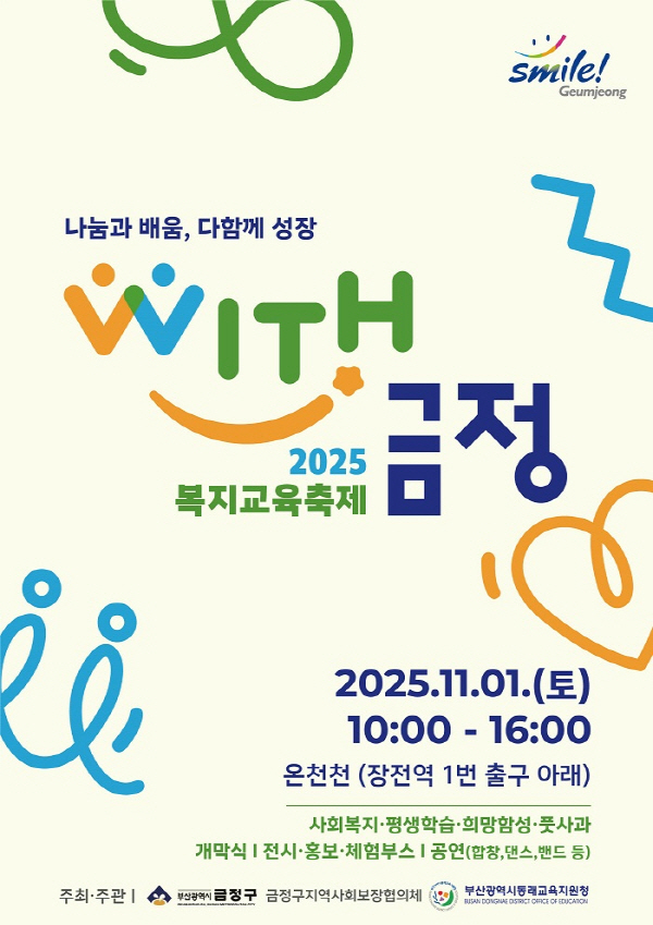 ºÎ»ê½Ã ±ÝÁ¤±¸(±¸Ã»Àå À±ÀÏÇö)´Â ¿À´Â 11¿ù 1ÀÏ(Åä) ¿Âõõ(µµ½Ãöµµ ÀåÀü¿ª 1¹ø Ãⱸ ¾Æ·¡) ÀÏ¿ø¿¡¼ ¡®2025 º¹Áö±³À°ÃàÁ¦ WITH±ÝÁ¤¡¯À» °³ÃÖÇÑ´Ù°í 22ÀÏ ¹àÇû´Ù.